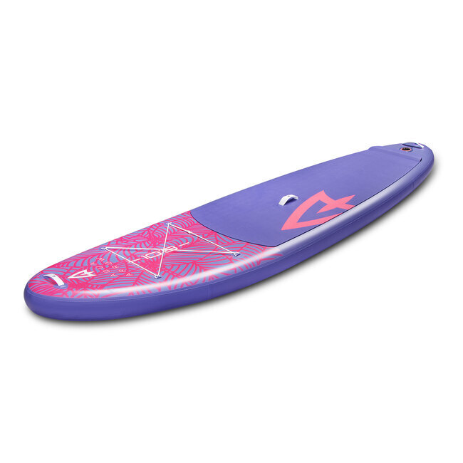 Sup доска надувная для серфинга 323x81x12 см, макс. нагрузка 140 кг Aqua Arrow 10.8 ART Purple Leaf сиреневый/розовый, сапборд для плавания, комплект:плавник, весло, лиш, насос, ремкомплект и сумка