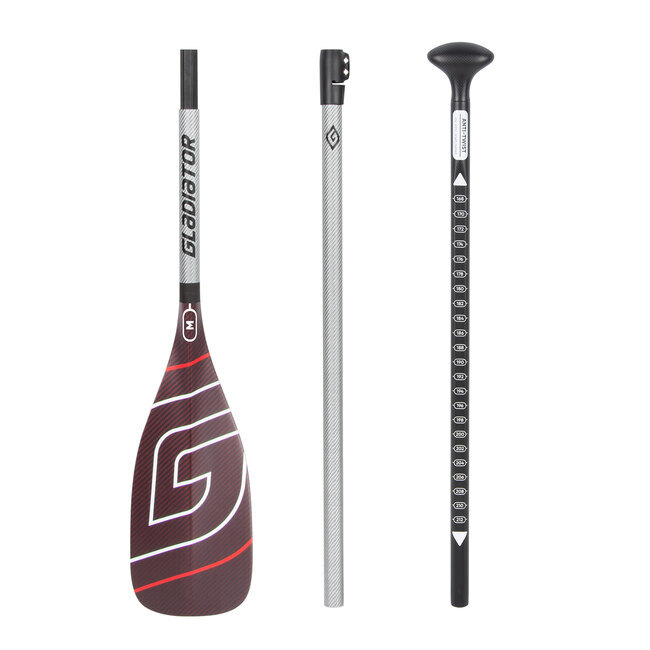 SUP весло Gladiator Race Carbon/Kevlar silver/red 3-части, лопатка M